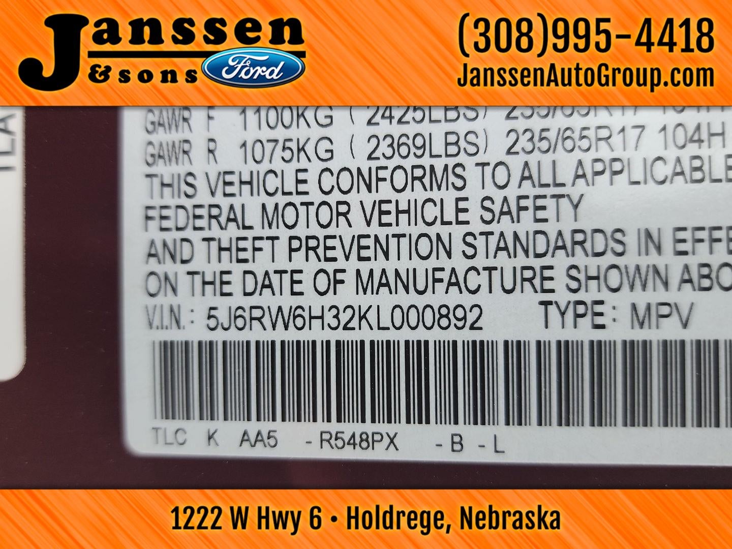 - Tires: P235/65R17 104H All-Season